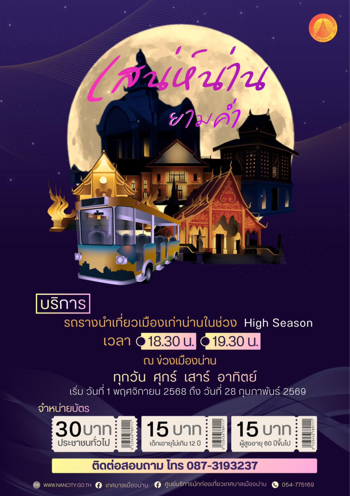 🚎 ให้บริการ 2 ช่วง เวลา 18.30 น. และ 19.30 น. ณ ข่วงเมืองน่าน