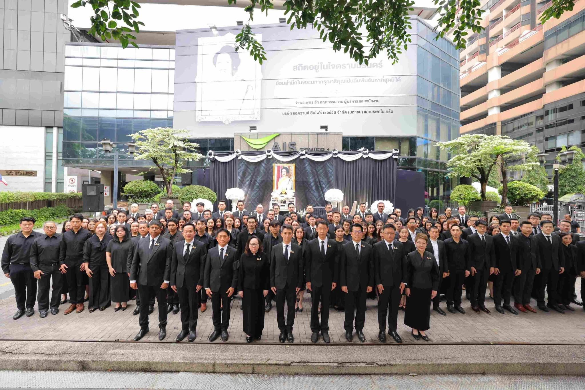 บริษัท แอดวานซ์ อินโฟร์ เซอร์วิส จำกัด (มหาชน) หรือ เอไอเอส และบริษัทในเครือ นำโดย นายปรัธนา ลีลพนัง ประธานเจ้าหน้าที่บริหาร พร้อมด้วยคณะผู้บริหารและพนักงานจากทุกสายงานทั่วประเทศ ร่วมแสดงความอาลัย สำนึกในพระมหากรุณาธิคุณอันหาที่สุดมิได้ เบื้องหน้าพระฉายาลักษณ์ สมเด็จพระนางเจ้าสิริกิติ์ พระบรมราชินีนาถ พระบรมราชชนนีพันปีหลวง ผู้ทรงเป็นดั่งร่มโพธิ์ร่มไทรของแผ่นดิน เป็นศูนย์รวมแห่งความรัก ความศรัทธา และความผูกพันของปวงชนชาวไทย โดยพิธีจัดขึ้น ณ อาคารเอไอเอส ทาวเวอร์ 1 ถนนพหลโยธิน กรุงเทพมหานคร ซึ่งเป็นศูนย์กลางในการแสดงความอาลัยและสำนึกในพระมหากรุณาธิคุณ พร้อมสำนักงานปฏิบัติการภูมิภาคเอไอเอสทั่วประเทศ ร่วมใจแสดงความอาลัยโดยพร้อมเพรียงกัน