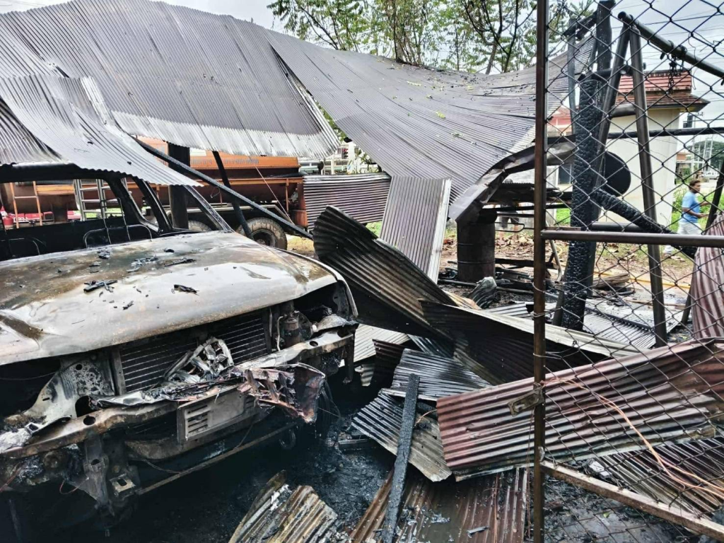 จากการตรวจสอบพบว่า จุดเกิดเหตุเป็นอู่ซ่อมรถของ นายรอด บุญวัน (ช่างรอด) ตัวอาคารซึ่งเป็นทั้งบ้านพักและอู่ซ่อมรถได้รับความเสียหายทั้งหมด ทรัพย์สินที่เสียหายประกอบด้วย รถยนต์กระบะ 1 คัน และ ข้าวเปลือกประมาณ 10 กระสอบ เบื้องต้น ไม่มีผู้ได้รับบาดเจ็บหรือเสียชีวิต