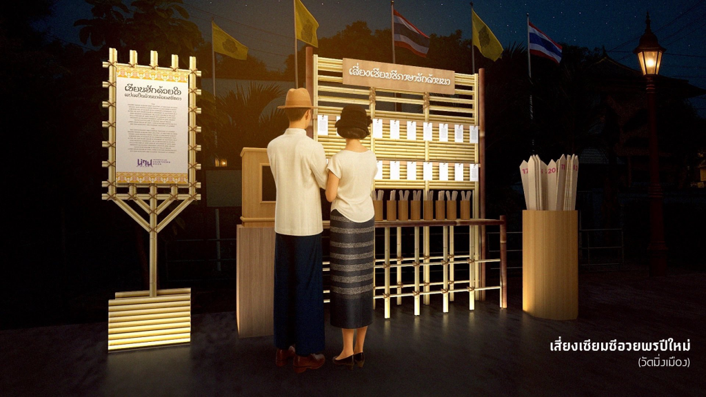 -กำแพงเขียนฮักด้วยใจ แปลเป็นล้านนาด้วยศรัทธา และร่วมเสี่ยงเซียมซีรับคำอวยพรปีใหม่ ที่บริเวณวัดมิ่งเมือง